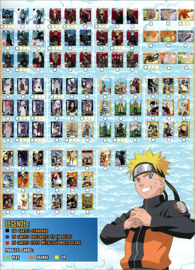 Le classeur contient 26 feuilles, soit 234 cartes (ou 468 cartes en recto/verso)Détail : - Cartes de Base: 150