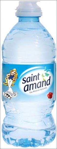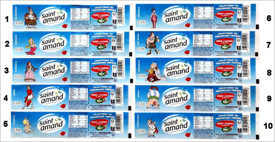 Collection de 20 étiquettes sur les bouteilles d'eau de la marque Saint Amand.