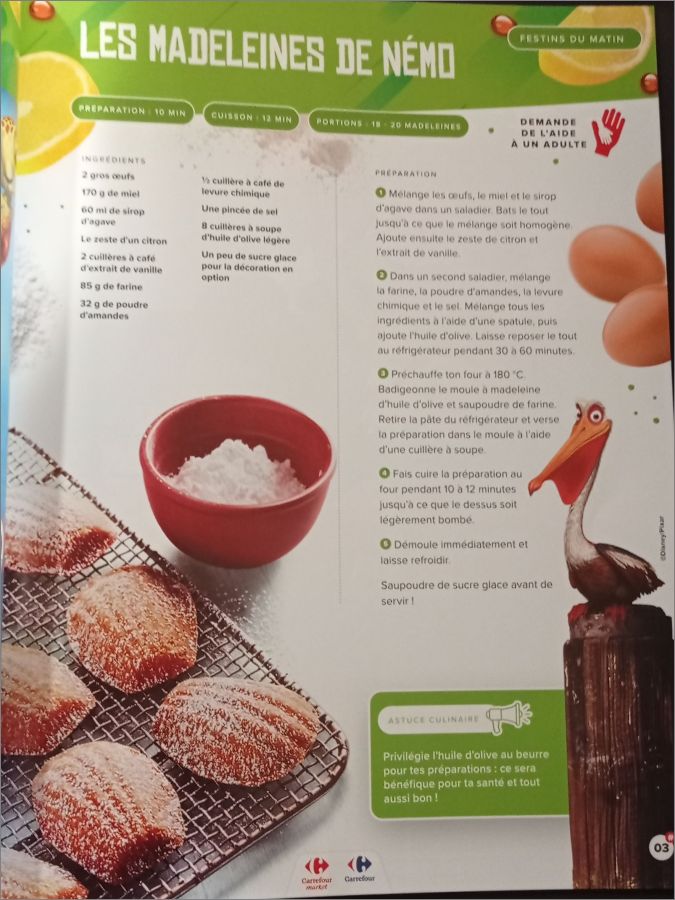 la partie "B" correspond à la recette du personnage Disney