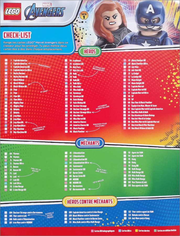 Lego Avengers série 1 - Cards - Blue Ocean - France - 2023