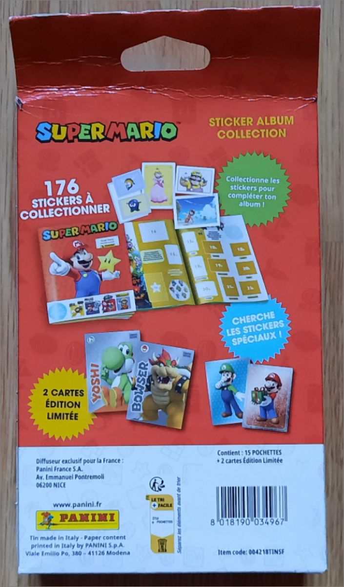 - Blister 8 pochettes + 1 EL (Luigi, Mario ou Peach): 7,20 €