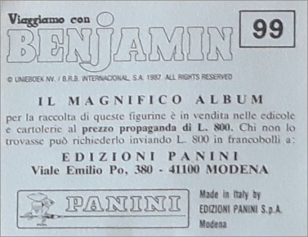 Viaggiamo con Benjamin - Sticker Album - Panini - 1988