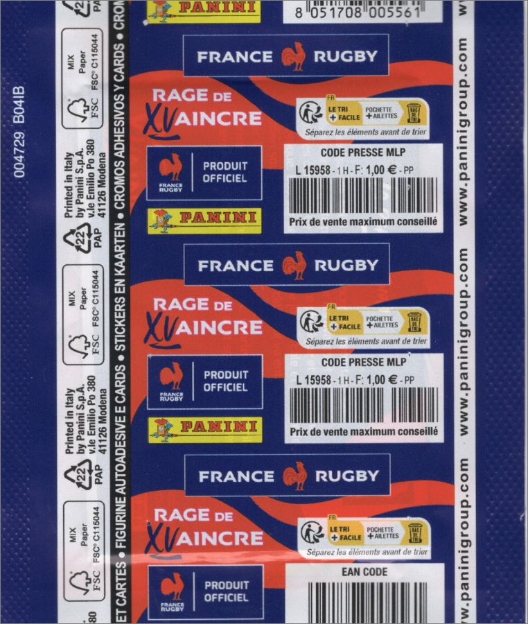 - Tin Box de 12 pochettes + 3 cartes en Édition Limitée (Antoine DUPONT, Grégory ALLDRITT et Gaël FICKOU) : 14,95 €