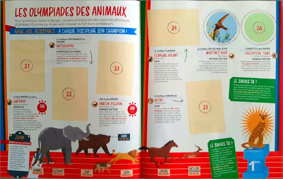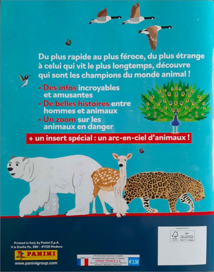 224 stickers à collectionner, dont 47 spéciales (15 transparentes et 32 brillantes), pour compléter ton album sur tous les records des animaux. Les plus étranges, les plus rapides, les plus petits, les plus colorés, les plus venimeux... Tu seras incollable sur les animaux.
