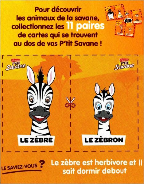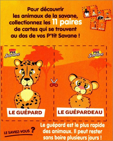 Collection de 11 paires de cartes d'animaux de la savane se trouvant au dos des boites de P'tit Savane de Brossard