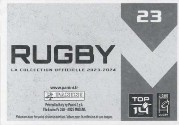 Rugby 2024 : Saison 2023-24 - Top14 - Sticker Album Panini