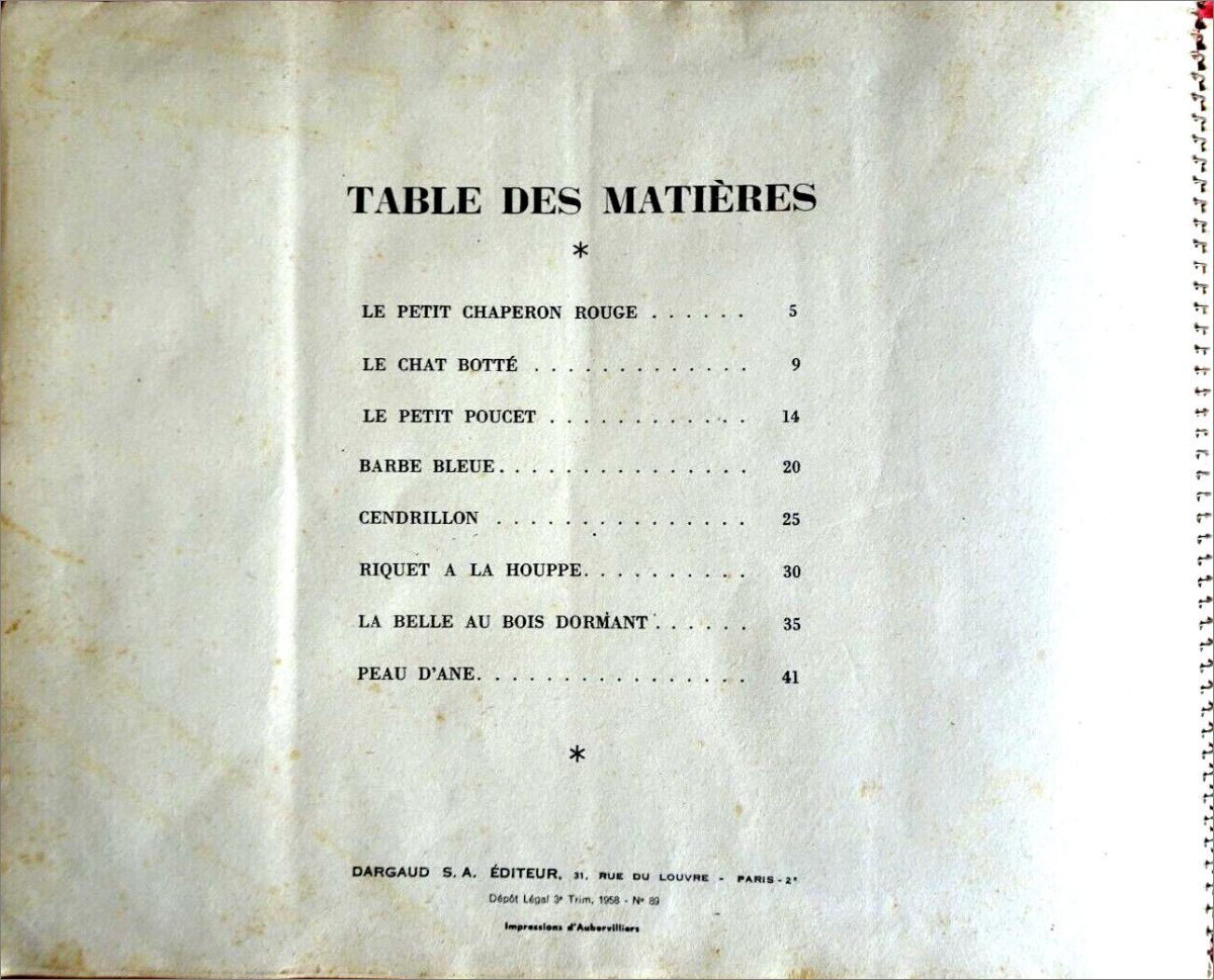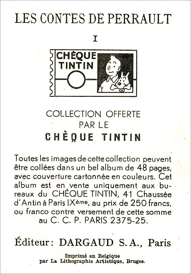 Les contes de Perrault collection chèque Tintin Dargaud 1954