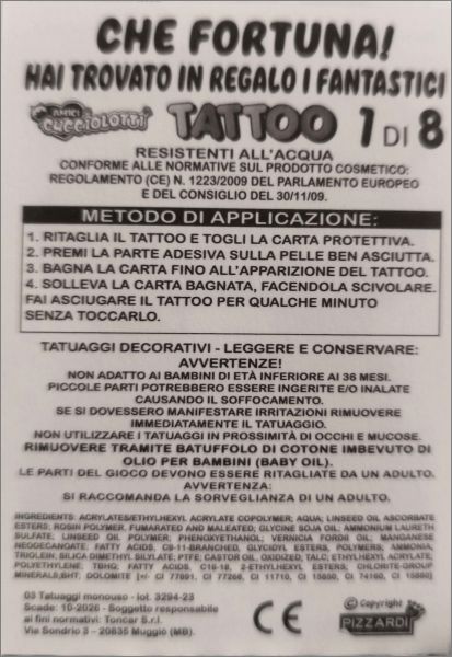 Partie 2 : Mini- stickers MS1 à MS8 , C1 à C72 (cartes), T1 à T8 (Tatouages)
