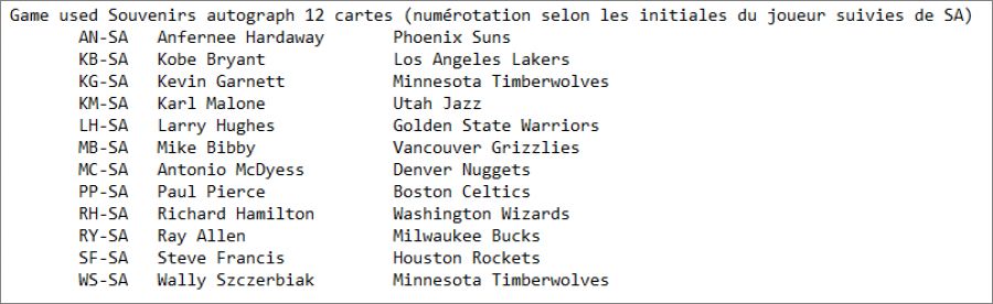 Cartes Game used Souvenirs autograph *GuSa : AN-SA, KB-SA, KG-SA, KM-SA, LH-SA, MB-SA, MC-SA, PP-SA, RH-SA, RY-SA, SF-SA, WS-SA