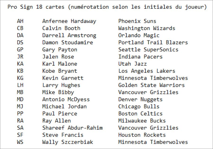 Cartes Pro Sign *Pro : AH, CB, DA, DS, GP, JR, KA, KB, KG, LH, MB, MD, MJ, PP, RA, SA, SF, WS