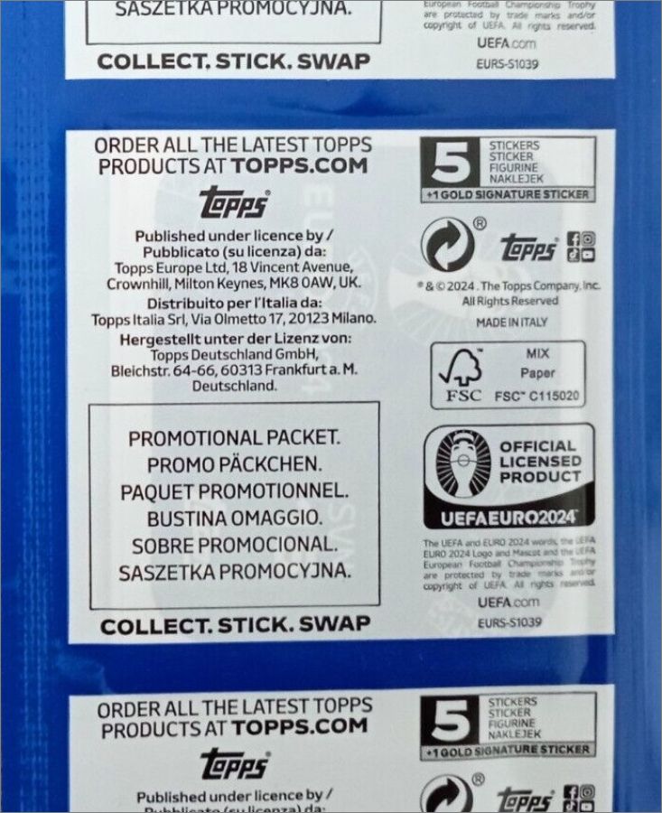 UEFA Euro 2024 Germany Topps Version Internationale - 2/2Liens vers les éditions dites parallèles :Fiche des blue parallel, euro parralel, green parralel et purple parralel :