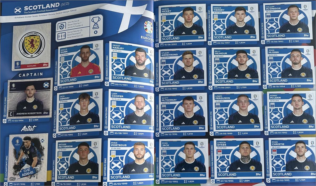 UEFA Euro 2024 Germany Topps - International - Parallèles 2/2Référence images "PAYS"ALB1 à ALB21 : Albanie (pages 26 et 27)