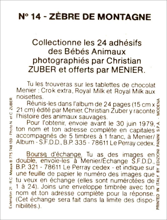 Les bébés animaux par Christian ZUBER - Chocolat Menier 1979