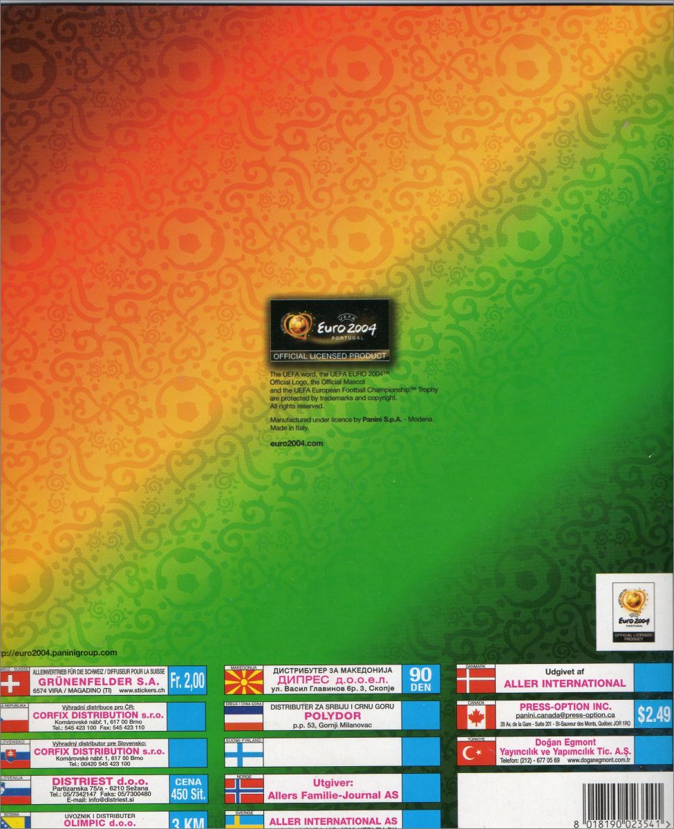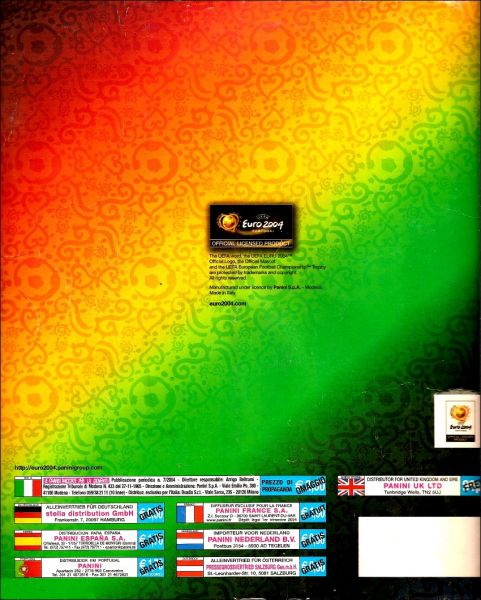Une fois de plus, venez célébrer l'événement « UEFA EURO 2004 » avec Panini. L'album officiel de la compétition .