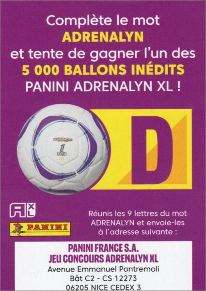 Pochette sans code = GRATUITELe classeur contient 60 feuilles numérotées : soit 540 cartes en rectoSur environ une pochette sur deux, un coupon est inclus avec les lettres : A ou D ou R ou E ou N ou L ou Y pour former le mot Adrenalyn (le A et N devront être trouver deux fois).