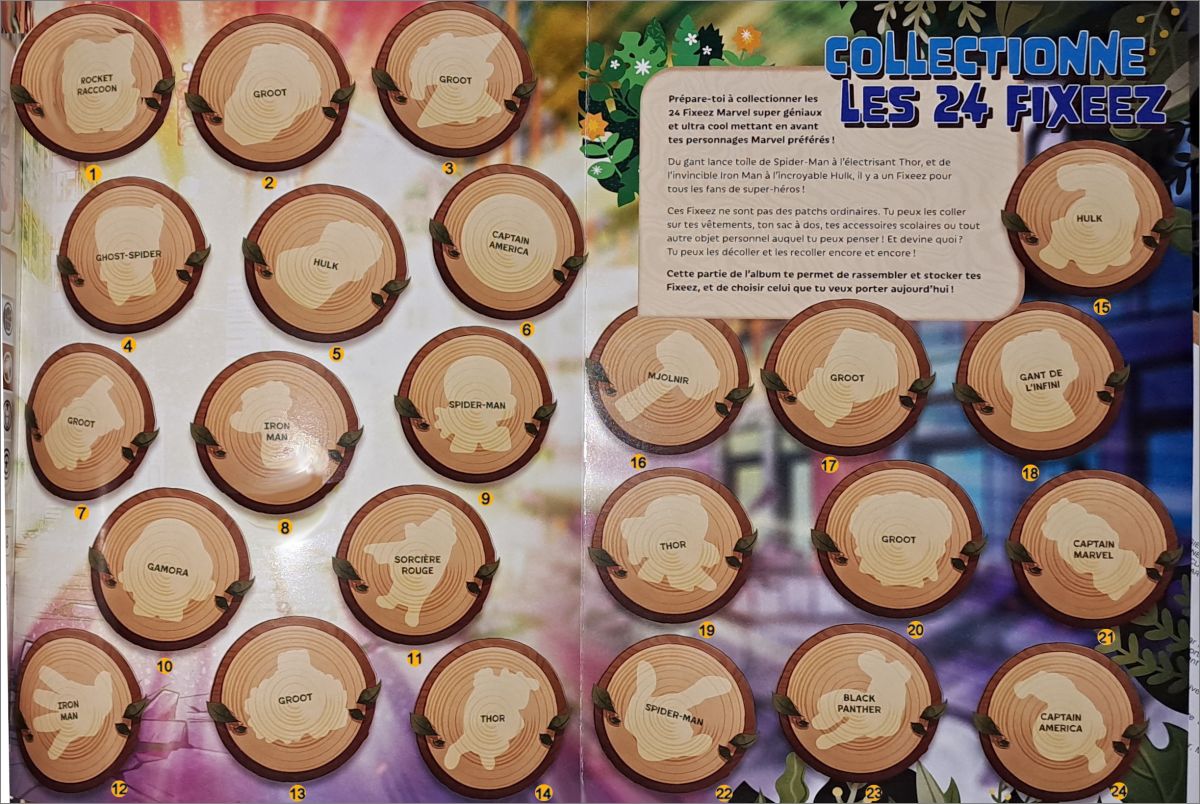 Détail des 24 fixeez (référencement dans l'ordre de l'album : (F1 à F24)