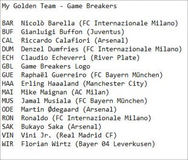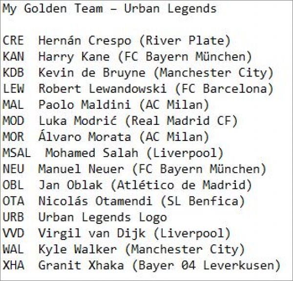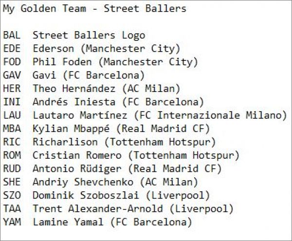Images My Golden Team *gold : AGU, ALI, AND, ARA, ART, BAL, BAR, BAS, BEC, BEL, BRE, BSI, BUF, CAL, COU, CRE, DFE, DIA, DRI, DRO, DUM, ECH, EDE, FOD, GAV, GBL, GRI, GUE, HAA, HAK, HER, INI, JPA, KAN, KDB, KIM, LAU, LEA, LEW, MAI, MAL, MBA, MOD, MOR, MSAL, MUS, NEU, NUN, OBL, ODE, OTA, PED, RIC, RLN, ROD, ROM, RON, RUD, SAK, SAL, SAN, SHE, SON, SZO, TAA, TAH, TOR, URB, VIN, VLA, VVD, WAL, WIR, XHA, YAM