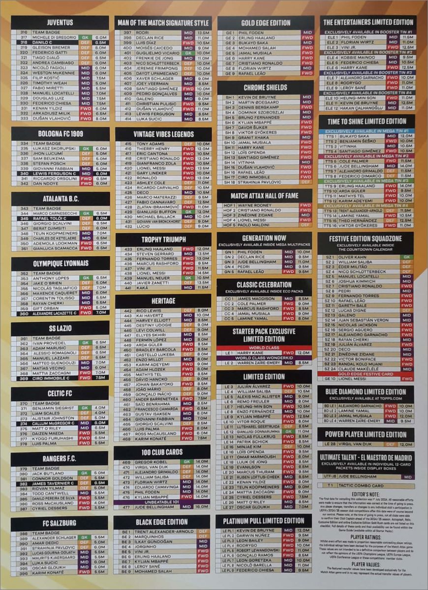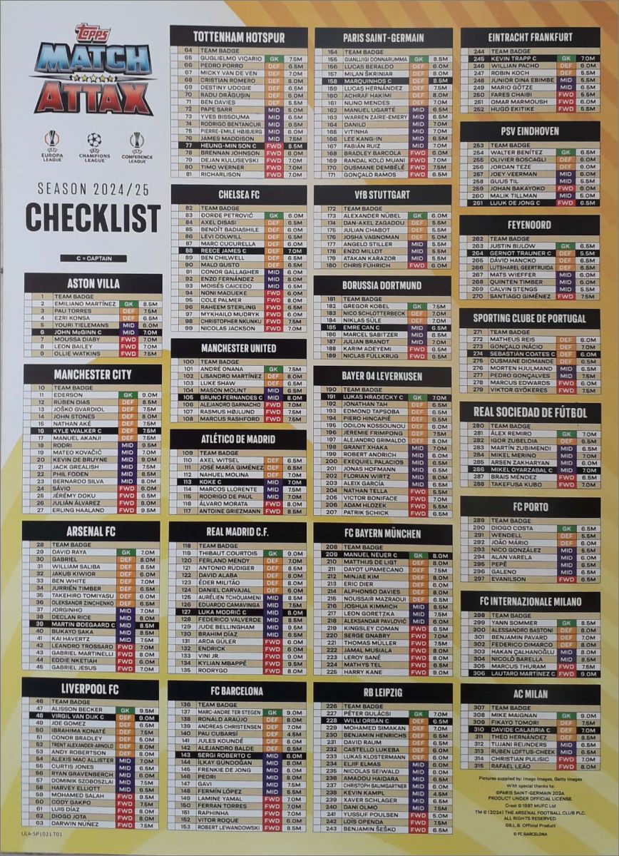 Match Attax : UEFA League (part 1) Topps 2024 / 2025