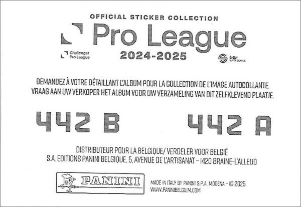 Football Pro League 2025 - Sticker (part 2) Panini Belgique