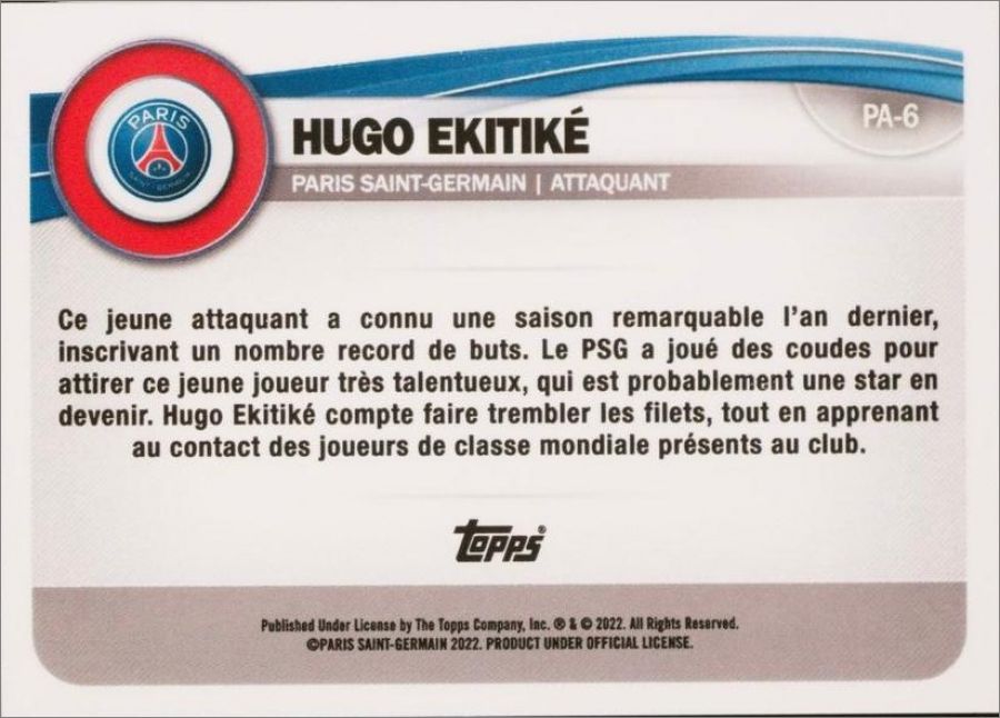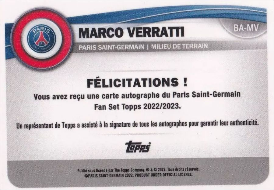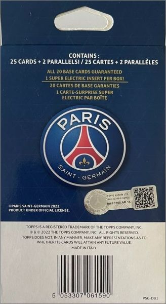 A ne pas confondre avec la collection du même éditeur concernant également la saison 2022-2023 dont les cartes sont en anglais (avec numérotation différente) Paris Saint-Germain season 2022-23 official Team Set - Topps