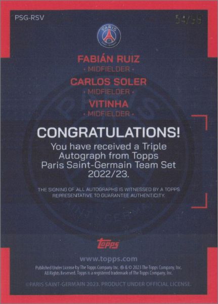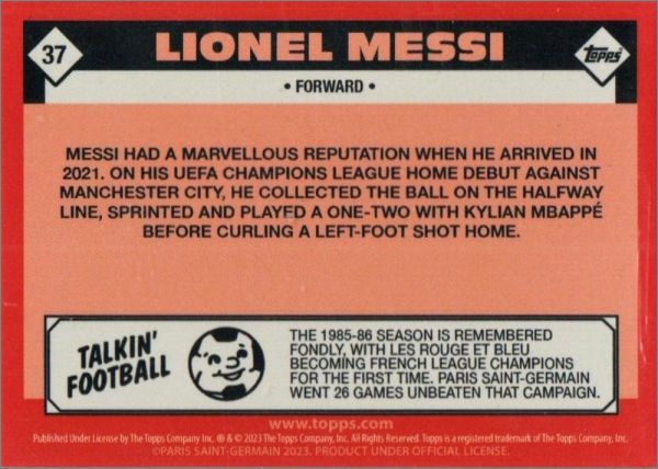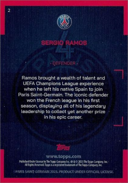 A ne pas confondre avec la collection du même éditeur concernant également la saison 2022-2023 dont les cartes sont en français (avec numérotation différente) Paris Saint-Germain saison 2022-23 official trad card Topps