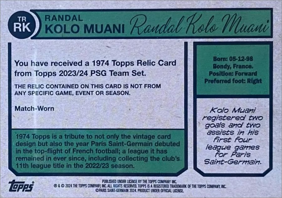 A ne pas confondre avec la collection Fan Set du même éditeur concernant également la saison 2023-2024 dont les cartes sont en français Paris Saint-Germain Fan Set saison 2023-24 tr card Topps FR