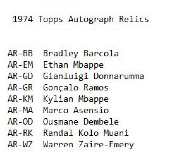 Topps : 1 à 50, TR-1 à TR-5, 1974 Topps Relics + cartes autographes