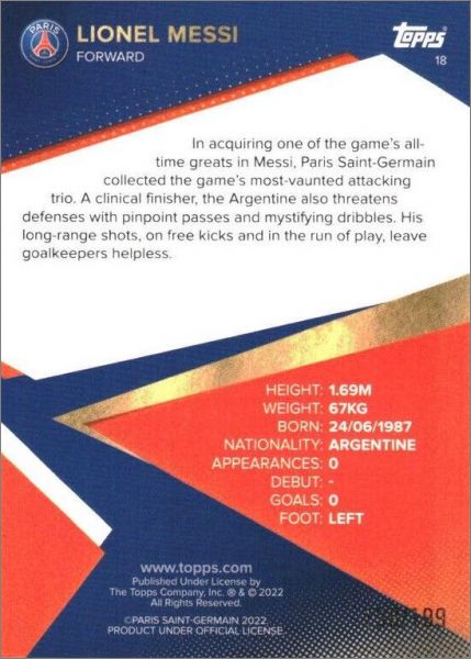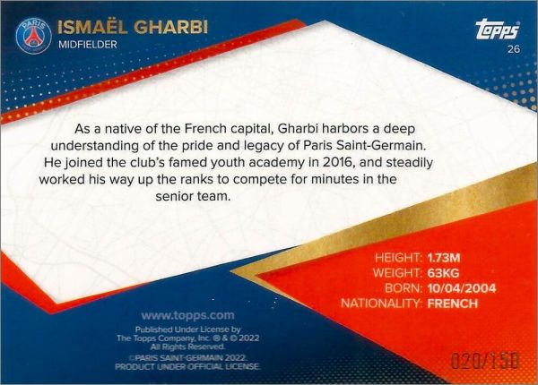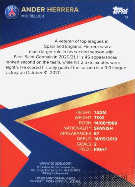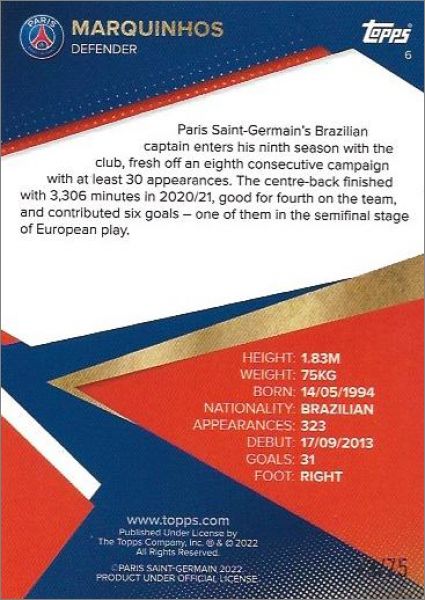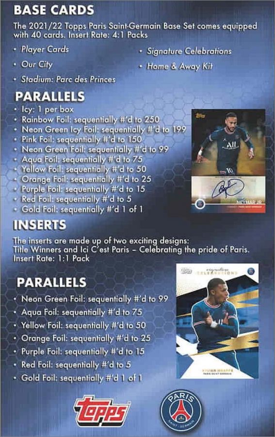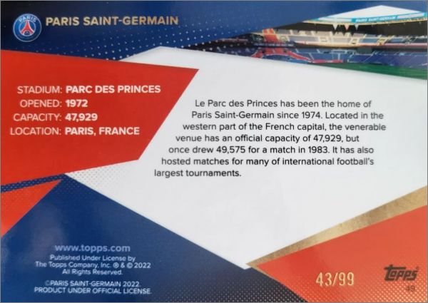 Paris Saint-Germain season 2021-22 Parallel 1/2 Card Topps