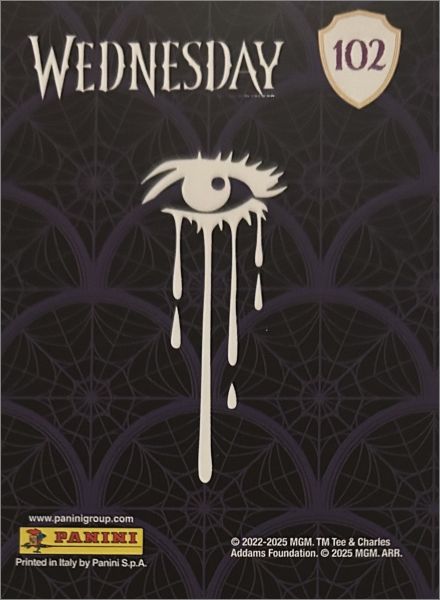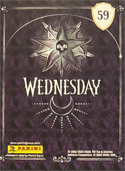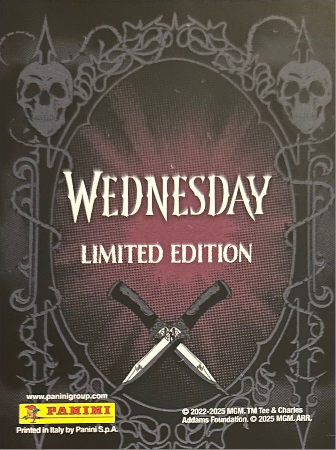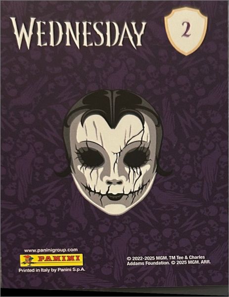 Pour l'album de stickers sorti la même année voir cette fiche : Mercredi Addams (2) - Sticker Album - Panini - 2025. Le monde sombre de Mercredi Addams ouvre à nouveau ses portes ! Avec les cartes à collectionner Mercredi Mystère, retournes à la mystérieuse Nevermore Academy, le lieu où les marginaux, les visionnaires et les créatures magiques trouvent refuge.