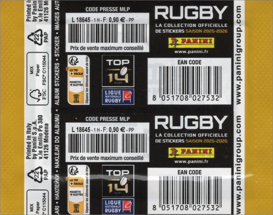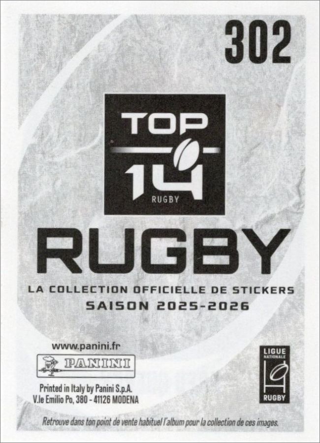 Rugby 2026 : Saison 2025-2026 - Top14 - Sticker Panini 2025
