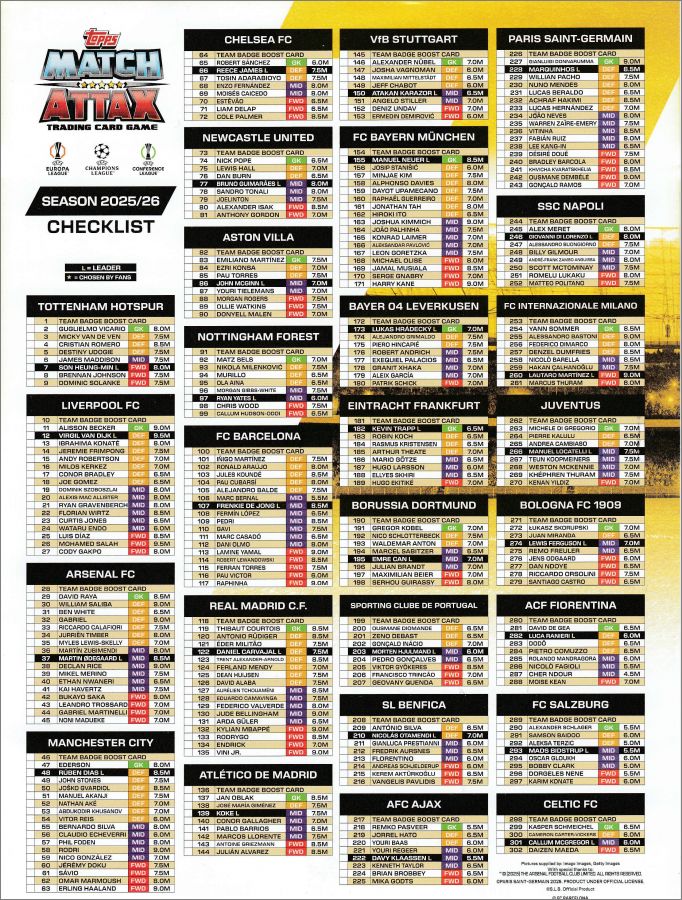Match Attax : UEFA League (part 1) Topps 2025 / 2026