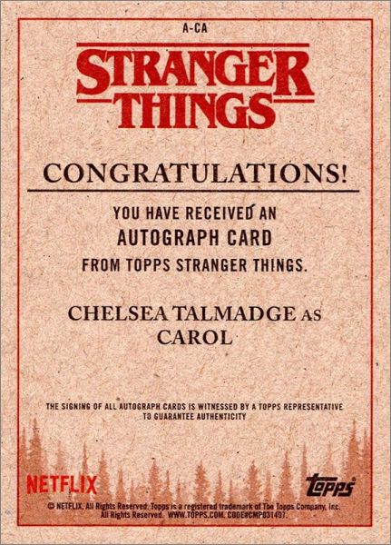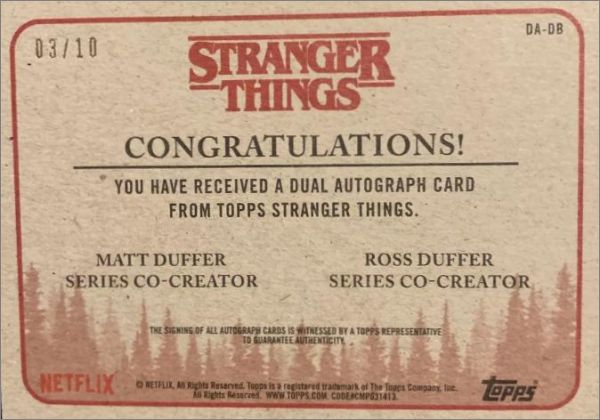 Cartes Autograph *Aut : A-11, A-CA, A-CF, A-DH, A-JH, A-KW, A-MD, A-MH, A-RD, A-SH, A-TH, A-TW, A-WB