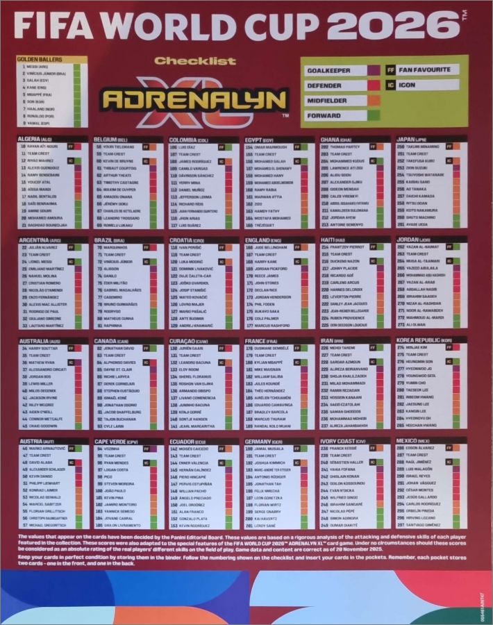 Fifa World Cup 2026 (2 sur 2) - Adrenalyn - Panini 2026Répartition des cartes dans les pochettes: