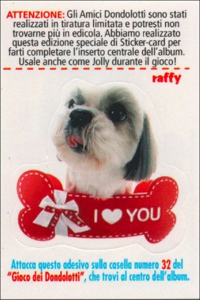Balto = SC1, Black = SC2, Briciola = SC3, Cow Boy = SC4, Dado = SC5, Lello = SC6, Puff = SC7, Raffy = SC8, Rambo = SC9, Skizzo = SC10, Tip e Tap = SC11, Westie = SC12
