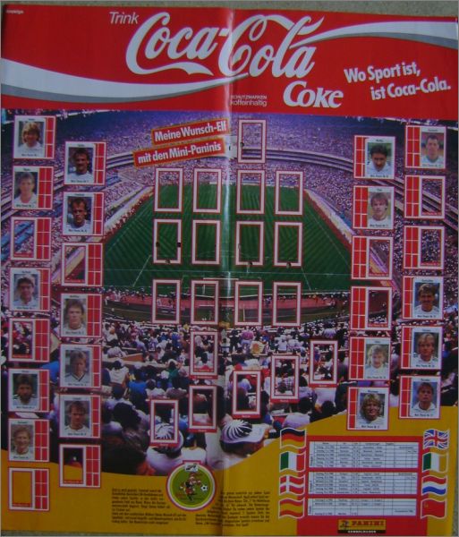 Dans l'édition allemande, était offert un poster Coca Cola avec 28 emplacements numérotés pour recevoir des mini-images panini des joueurs de l'équipe de RFA. Ces images au nombre de 28 était à détacher sur les étiquettes de boissons commercialisées par Coca Cola en Allemagne et à découper pour les coller sur le poster.