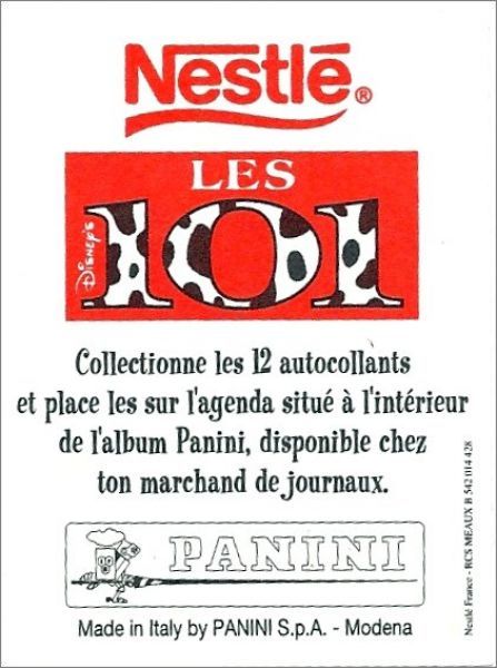 Offert par Nestlé et dans l'album Panini Les 101 (Dalmatiens)