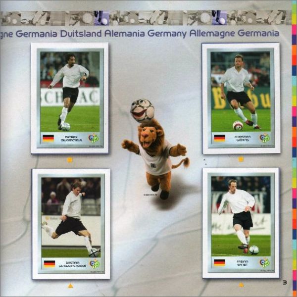 Petit et efficace. J'ai beaucoup aimé cet album. . J'ai bêtement dû perdre 2 vignettes. . Je l'avais acheté à Berlin la semaine suivant la finale de la coupe du Monde de 2006 au Stade.. Les stickers sont bien épais