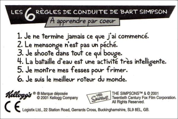 The Simpsons / Les Simpson - Cartes Kellogg's 2001