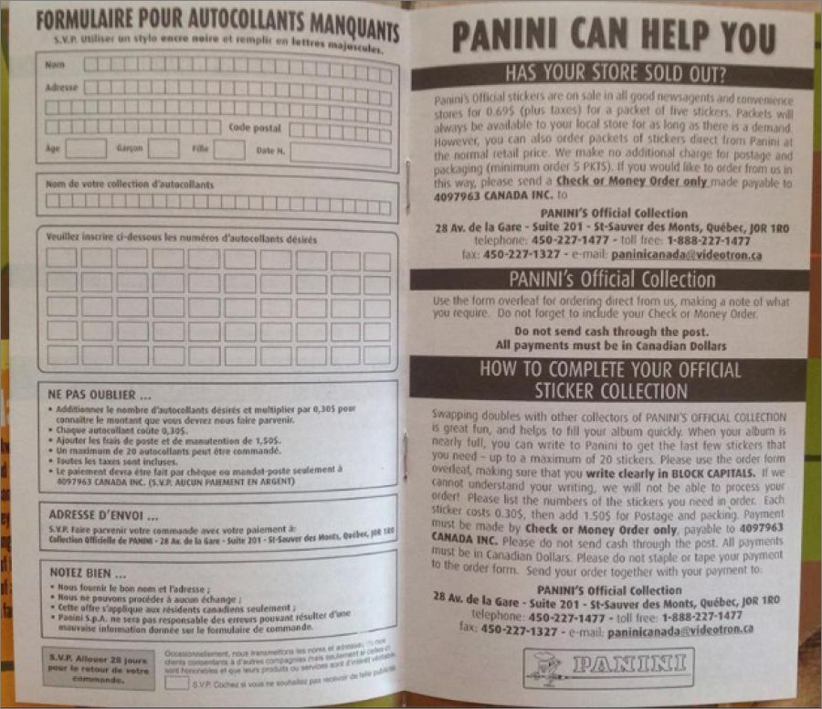 - Album canadien anglais incompl