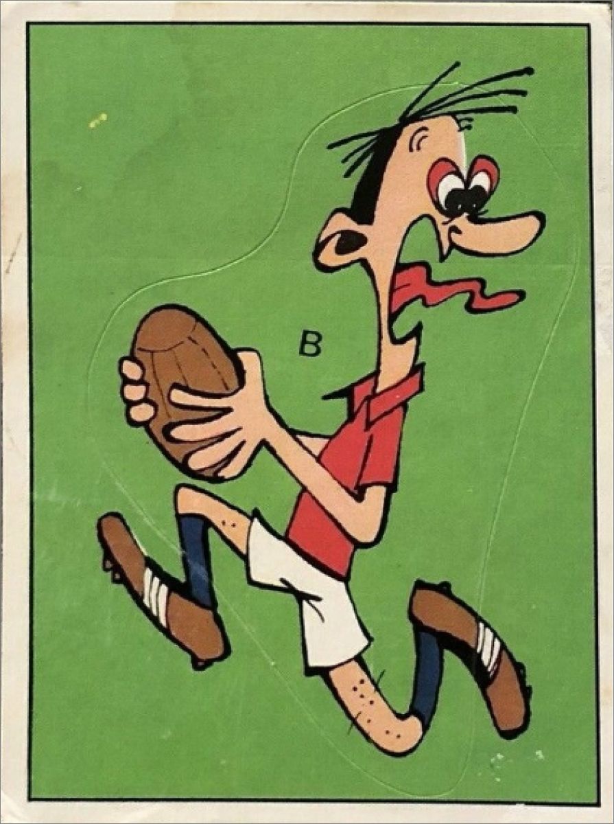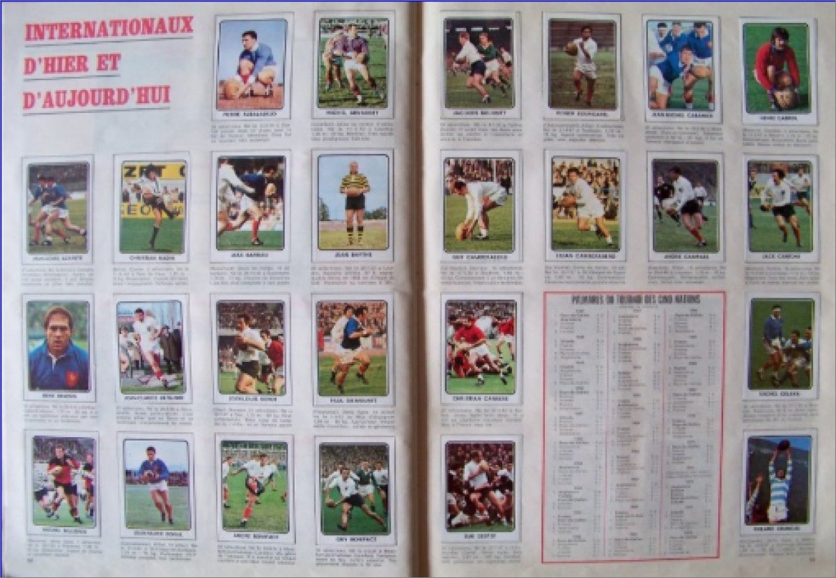 Tout beaute du temps du premier album sortie sur le rugby panini une reussite regle de jeux simple en dessin recreative et images de toutes beautees des doubles dans un tres grand et beau format et beaucoup de blasons et equipes de tous l'hectagone.