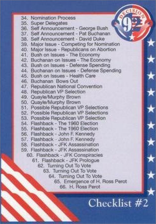 Collection de trading cards sortie en 1992 par l'éditeur " Wild Card" (fabrication par AAA Sports) pour l'élection présidentielle américaine de 1992