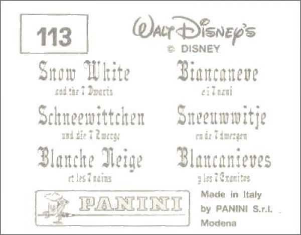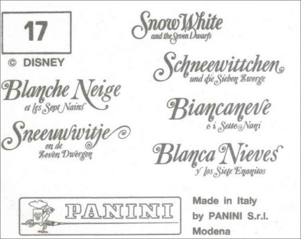 Sur le dos des images de 2001, le "sept" est écrit en toutes lettres. Par contre, sur le dos des images italiennes de 1994, le "7" est écrit en chiffre, et l'écriture est en gothique.